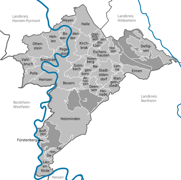 - Stadt Bodenwerder, Brevörde, Halle, Hehlen, Heinsen, Heyen, Kirchbrak, Flecken Ottenstein, Pegestorf, Flecken Polle, Vahlbruch
